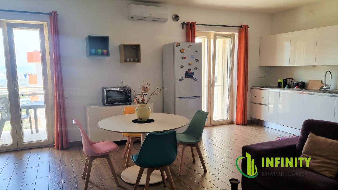 L'agenzia immobiliare Infinity di Matera propone in AFFITTO, ESCLUSIVAMENTE A SINGLE O COPPIE REFERENZIATE con reddito dimostrabile, bellissimo APPARTAMENTO ARREDATO DI RECENTE COSTRUZIONE di 65 mq circa al 3° piano con ascensore, sito in zona residenziale nord di Matera e pių precisamente in via Sinni. Nei pressi dell'abitazione troviamo supermercato e negozi di vario genere, oltre a fermata di autobus. L'appartamento č cosė composto: ingresso in zona giorno (soggiorno/cucina), disimpegno con armadio, camera da letto, bagno padronale, bagno di servizio/lavanderia e ampio balcone.
