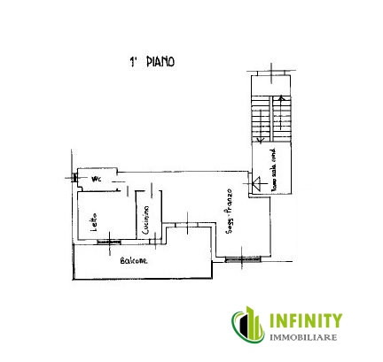 L'appartamento è composto da: ingresso, soggiorno/cucina ambiente aperto, camera matrimoniale, cameretta e bagno.