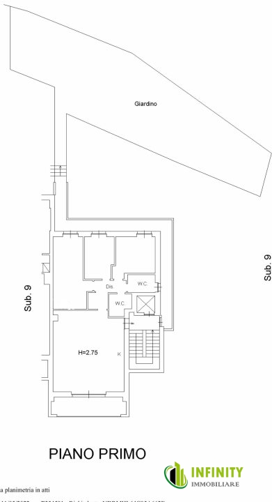 ● Appartamento di circa 120 mq al primo piano con balcone panoramico e giardino privato di circa 170 mq;