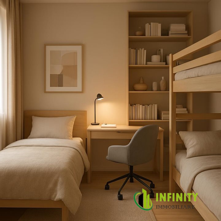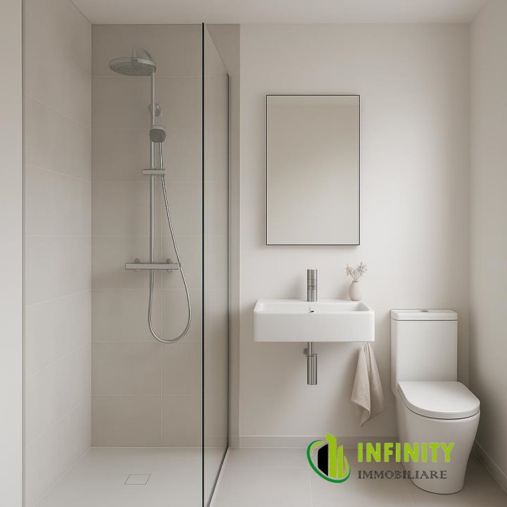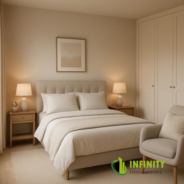 Composto da: zona giorno, disimpegno con una vano dove poter realizzare un comodo armadio a muro, camera da letto con bagno in camera e bagno padronale.