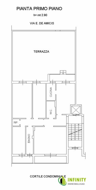 Spazi Esterni: Ampio terrazzo di 80 mq (con doppio accesso interno/esterno) e due balconi.